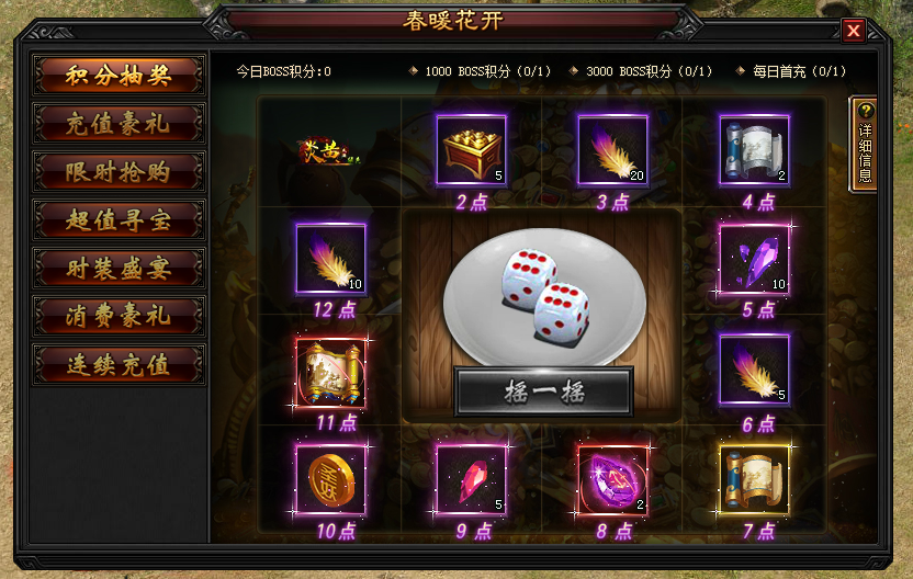 1.2 活动期间内击杀boss可获得积分,每天最多可以获得3次摇奖机会
