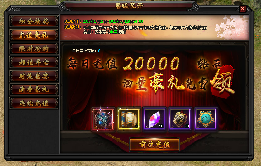 《炎黄大陆BT》2020年2月末充值活动(2月27日至2月29日)
