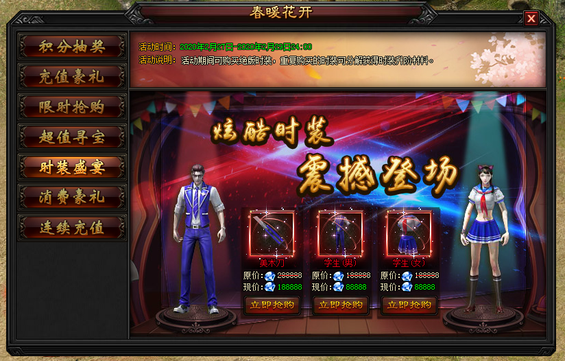 5.2 活动期间内,玩家可购买绝版活动时装,每个玩家限购一次