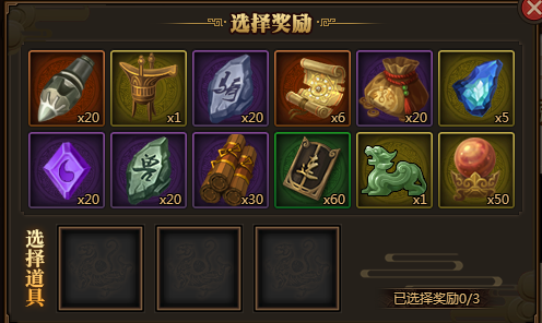 2、奖池分为一流、无双、神话3种 ,玩家每天可在3种奖池中选取分别选取5(一流)、4(无双)、3(神话)个道具来组成奖励转盘进行抽奖,每天仅一次自选次数,奖池情况如下:
