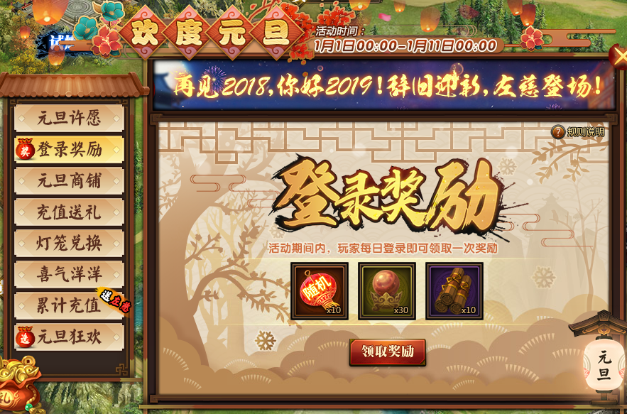 1、活动期间,每日登录可领取一次奖励。