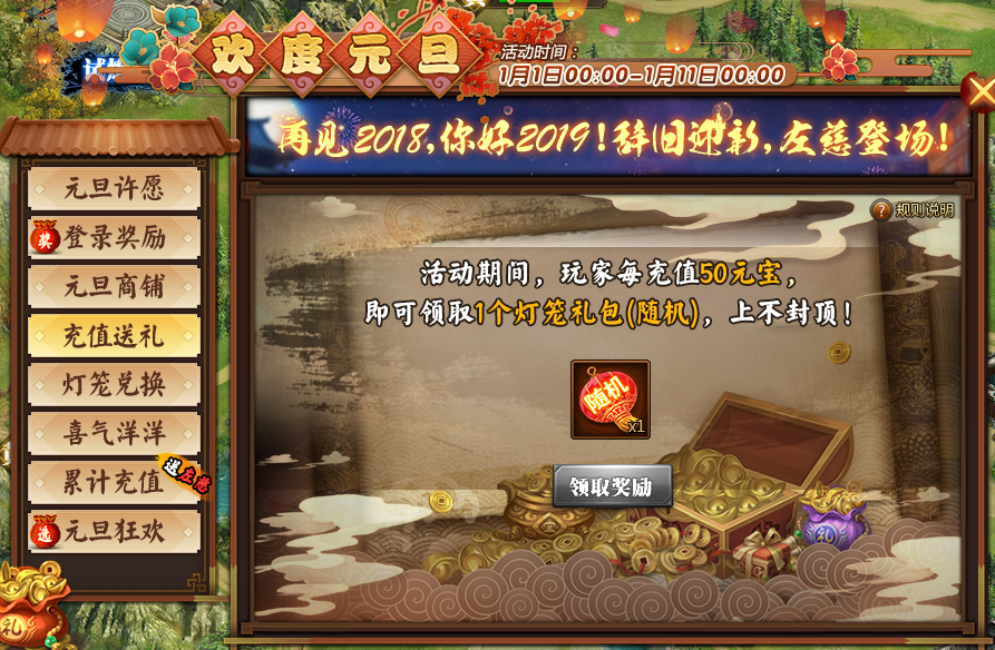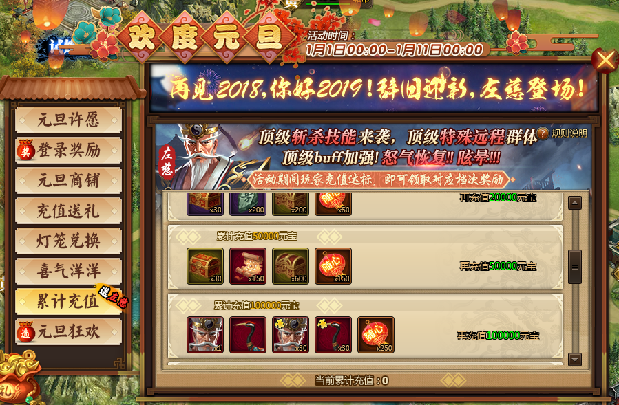 【兵法三国】2019年元旦节充值活动(2019年1月1日-2019年1月10日)