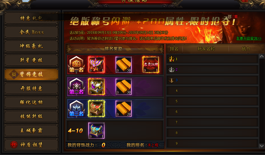 活动时间:开服3-4天