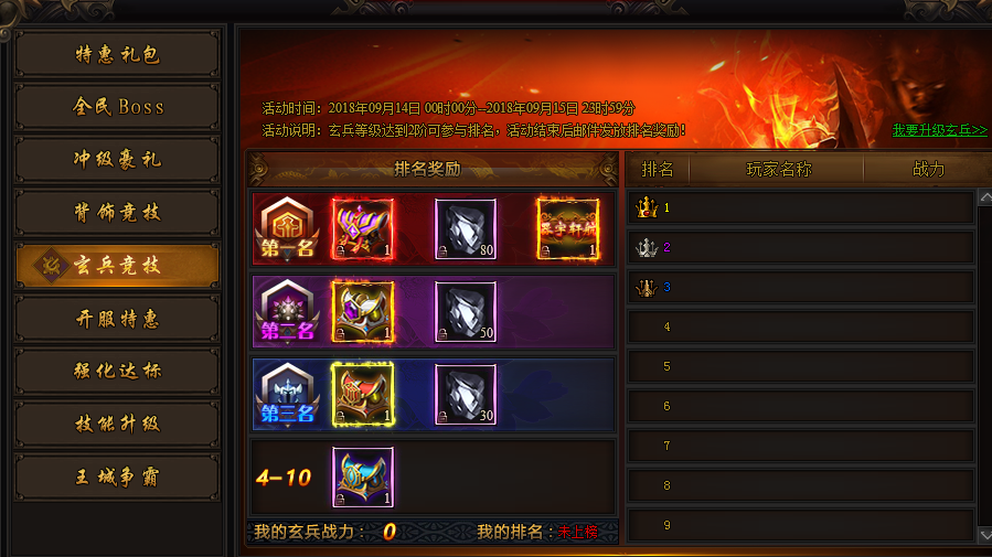 活动说明:玄兵达到2阶可参与排名,排名可获得丰厚奖励。