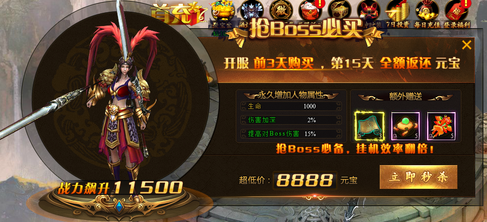 活动时间:开服1-2天