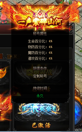 Ø 二、玩家累计充值(活动3天累计)达到30000RMB,可以自己选四至六个字-带特效定制称号,全属性增加2%。(定制称号在活动结束后统一提交制作,延后发放;活动期间,每个玩家仅能定制一个2%称号)
